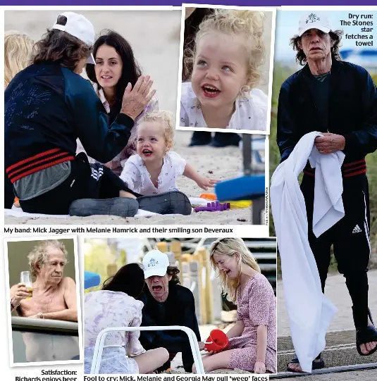 The rock icon was pictured relaxing on a beach in miami with his girlfriend melanie hamrick, their son deveraux and his daughter georgia may following the mick jagger. This is the rolling stones frontman's first child with girlfriend melanie hamrick.